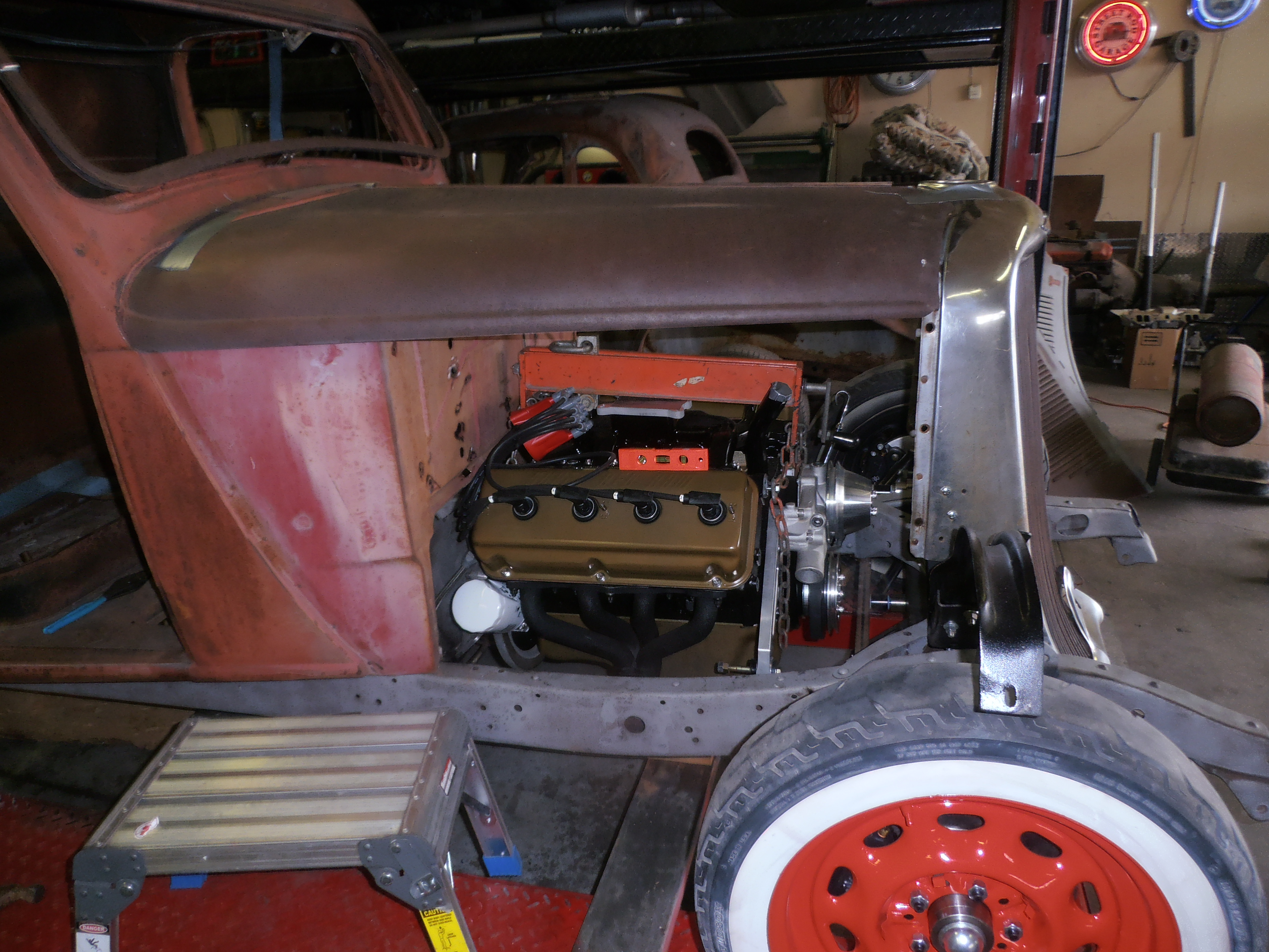 As I stated at the beginning of this posting, such an installation isn’t the most complicated fabrication job in the world, but it’s easy to get the measurements, angles, and geometry wrong and many backyard street rods do prove that they are super fun even if they don’t handle well and are inherently dangerous. I think we’re good with this one and it should ride and handle like a modern car. And this chiefly due to Ralph’s many years of professional experience. Now the fun part comes when trying to route the exhaust headers and steering through the same space. But we have a plan for that.
